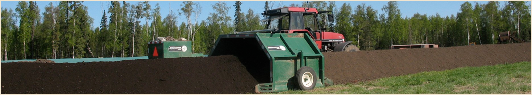 Humus Building Phase: Turning the compost with an Aeromaster PT-120 turner (below left) is an important part of the composting process. High quality inoculants (right) are blended with the compost. These inoculants contain a very wide diversity of beneficial fungi and bacteria, to build up the broken down organic matter in to long chain substances called humus. Humus is very beneficial for plants and the micro-life of the soil. It is a substance that is stable and remains in the soil for a very long time.